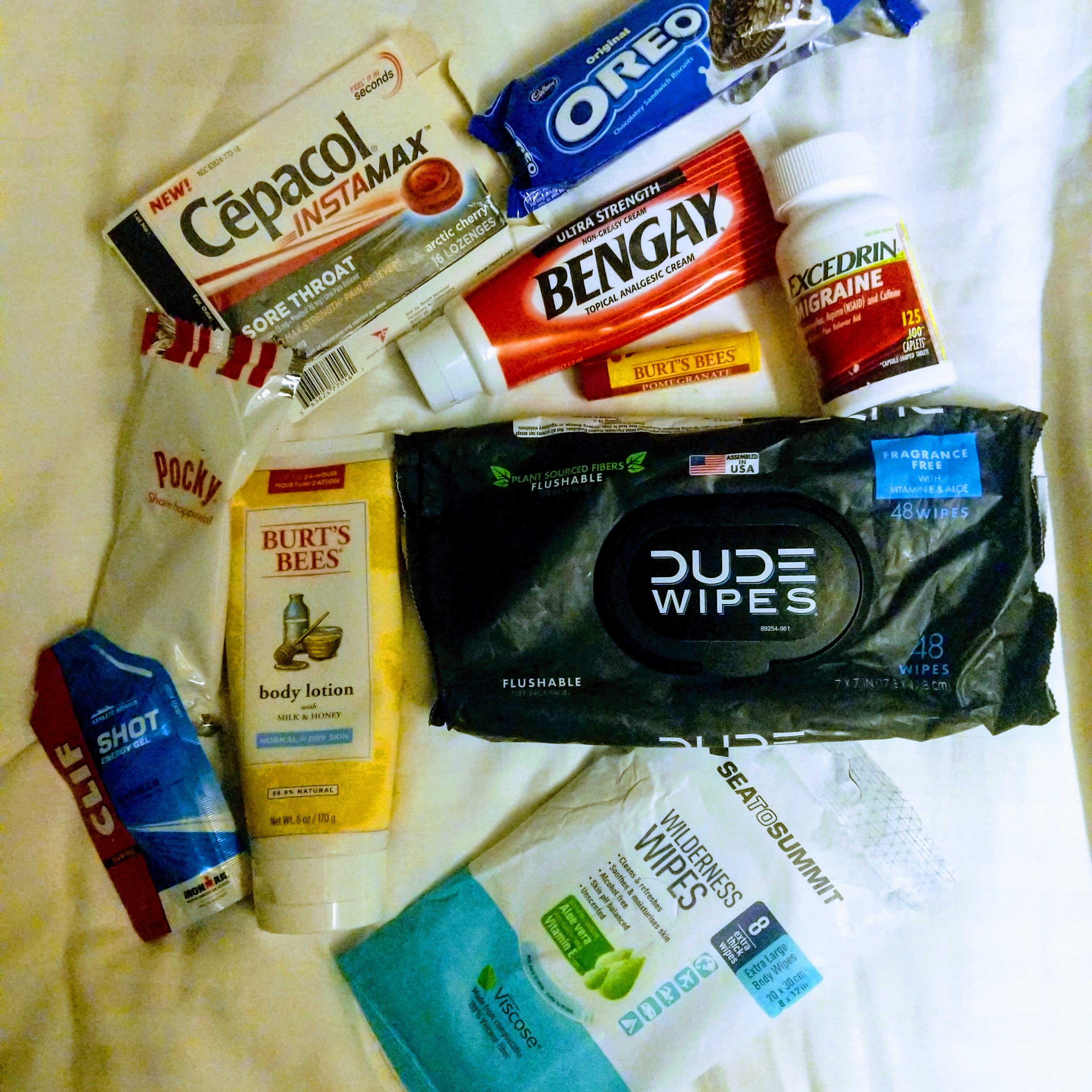 - Medicines (Cepacol, Inhalers, Pain Relievers)